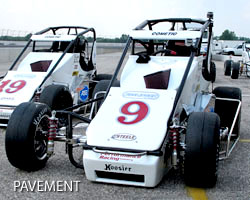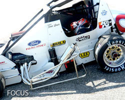 The Nine Racing midgets are powered by a four-cylinder Esslinger engine that is normally aspirated. The 166-cubic-inch powerplant is used both in the pavement and dirt midget cars. Newly added to the Nine Racing, Inc. stable of cars is a Ford Focus Midget, which uses the same style BEAST pavement chassis as the full midget and the only difference is the installation of a 180-horsepower Ford Focus engine. The pavement-style Ford Focus midget is designed to run on 1/4- and 1/5-mile paved ovals. |